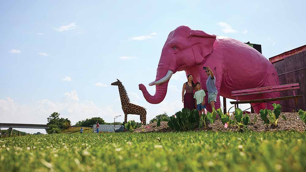setting. Keep the nostalgic feelings and browse through Pink Elephant Antique Mall for vintage finds. Or visit Brooks Catsup Bottle Water Tower, the world’s largest ketchup bottle (21 metres high) in Collinsville—one of Route 66’s most popular photo stops.
