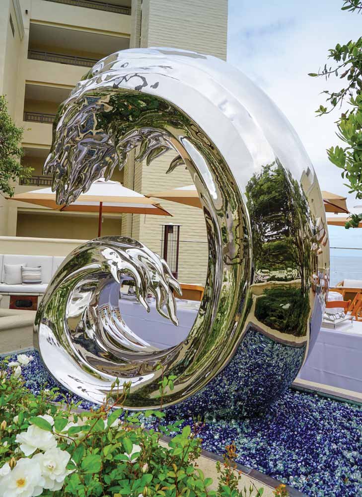 I feel that rhythm instantly at Surf and Sand Resort. The lobby opens like a seashell, drawing me toward windows framing nothing but horizon. Outside a wave sculpture glistens, frozen in a perpetual curl. Its curves symbolize not just the ocean’s power but its promise, too—of renewal, of infinite return. A multi-million-dollar renovation has polished this coastal Grand Dame without stripping away her soul. Modern conveniences—sleek bathrooms, soft linens, and hidden tech—sit comfortably alongside old-school charm. Revered today as a Historic Hotel of America, Surf and Sand attracts weddings, anniversaries, reunions, and milestone celebrations that fuse forever with the sound of surf. Standing barefoot on my balcony, I watch a bride lift her veil into the wind.
