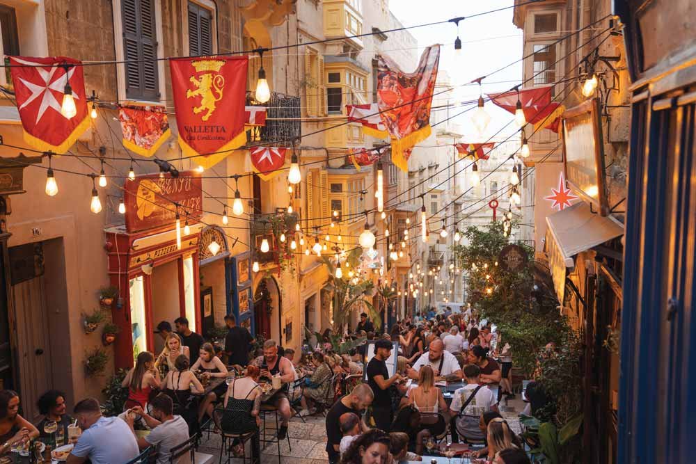 While history frames the harbour, Malta’s living culture animates it. On warm summer evenings, the waterfront transforms into a vibrant social stage. Families stroll along the promenade while café tables fill with animated conversations. Street musicians perform beneath wrought-iron balconies and the scent of espresso drifts through the air.