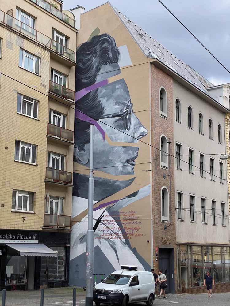 In the artsy Holešovice district, Tsukahara-Symon stops beneath a mural above Milady Horákové Street. Created this past spring by renowned street artist Toy_Box, it portrays Milada Horáková, a Czech politician executed by the Communist regime in 1950. Beneath her stoic profile runs a line from one of her final prison letters: “Walk through the world with your eyes open and listen not only to your pain and concerns, but also to the pains, concerns and desires of others.”